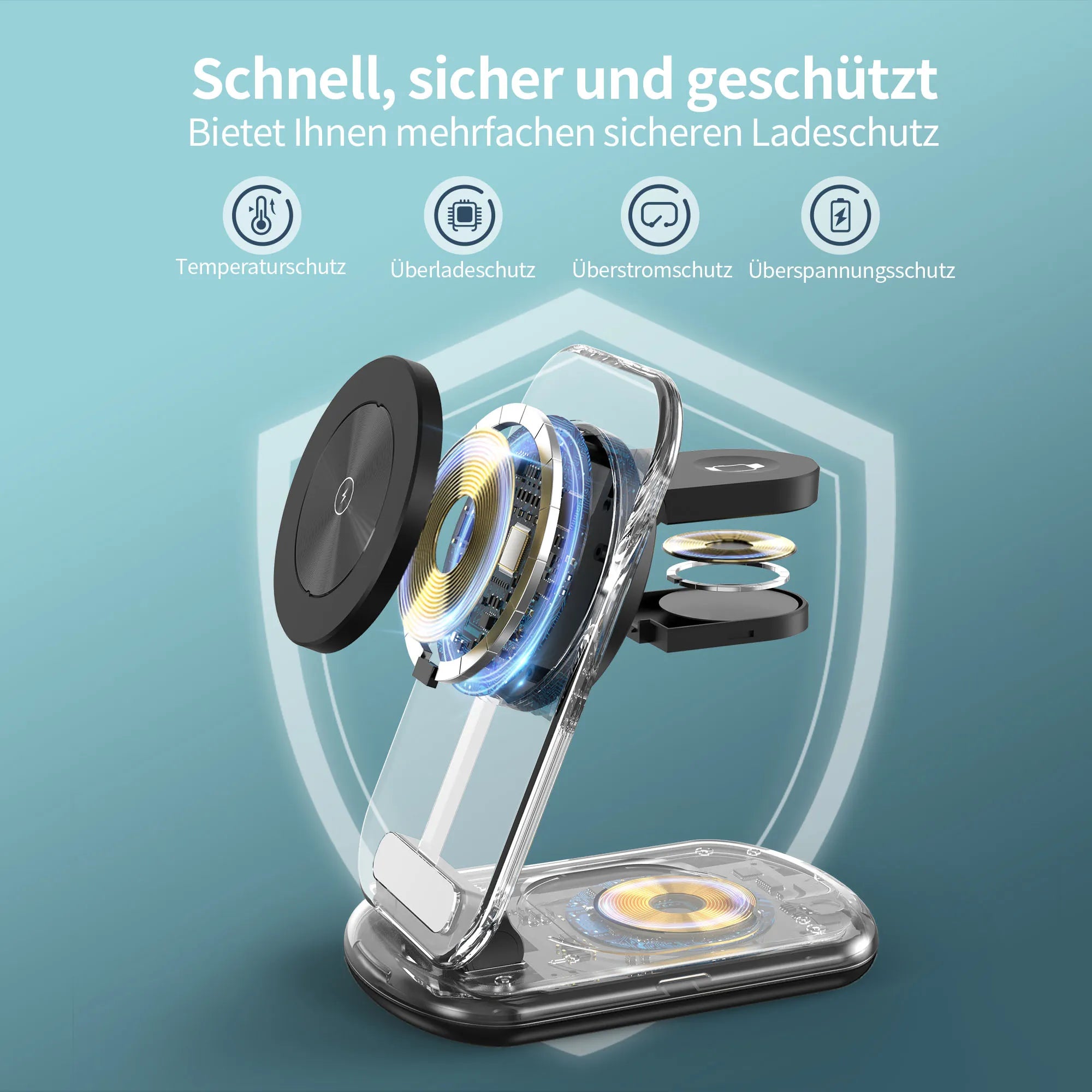 Unterstützt das gleichzeitige Laden mehrerer Geräte, ist mit iPhone, Apple Watch und AirPods kompatibel und erfüllt so die Bedürfnisse der Familie.