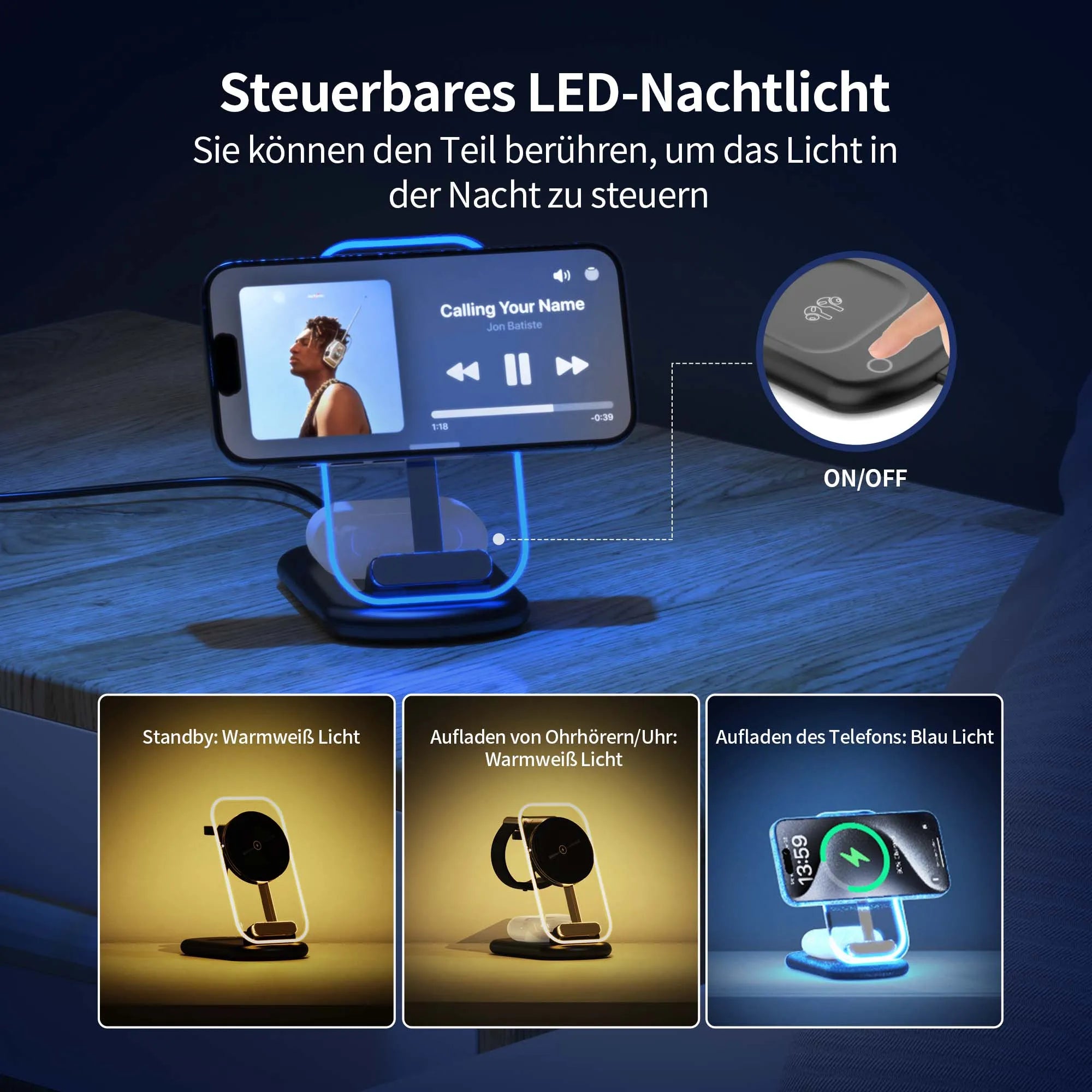 3-in-1-Magnetladegerät, kompatibel mit iPhone 15/14/13/12-Serie, Apple Watch Ultra/Ultra 2 und AirPods 3/2/Pro.