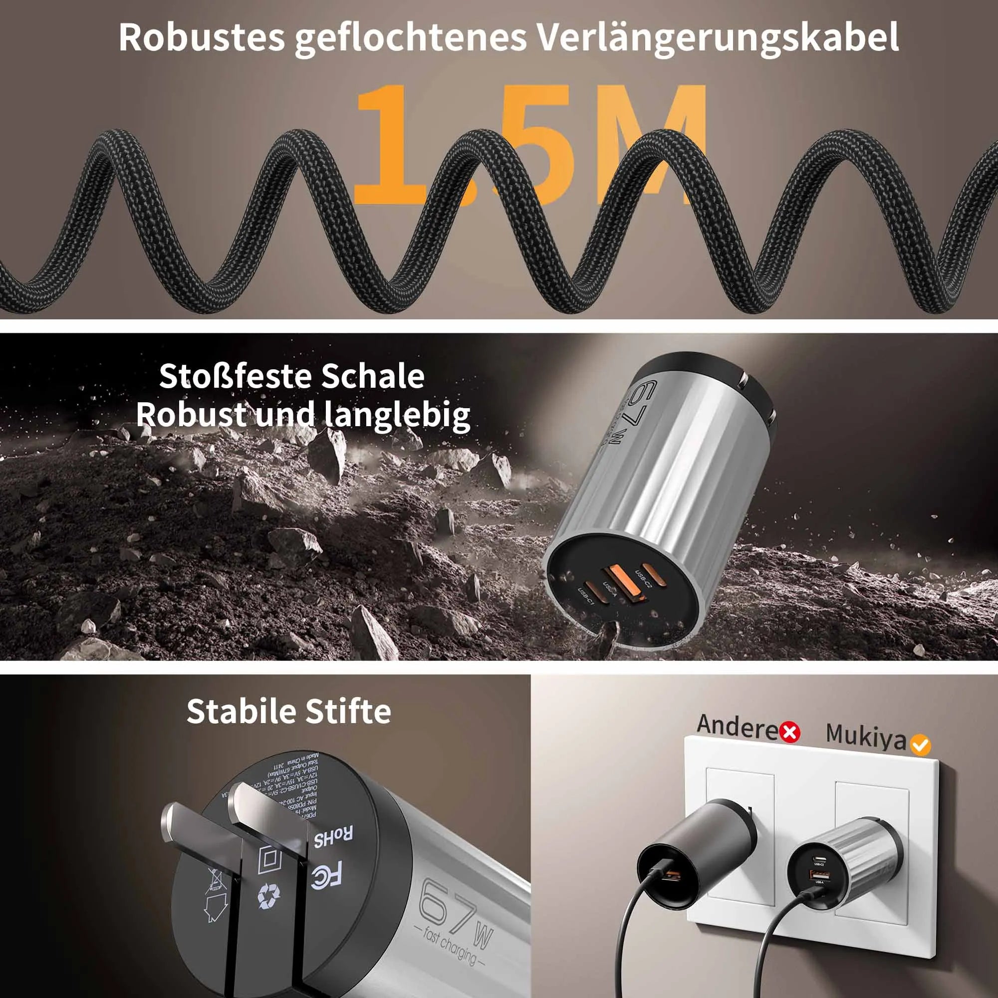 67 W Hochleistungsausgang, unterstützt schnelles Laden mehrerer Geräte.