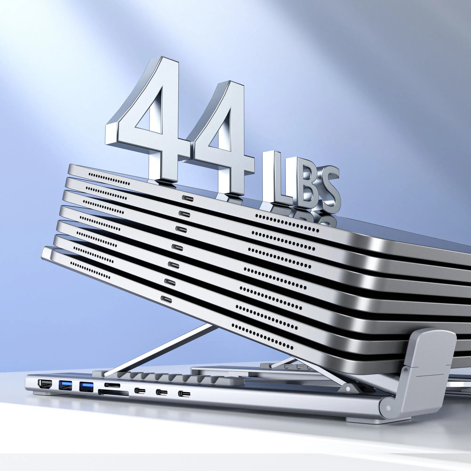 1. Ständer + Dockingstation in einem: unterstützt 10-17-Zoll-Laptops (40 Pfund)